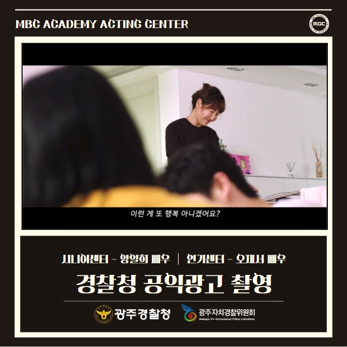 경찰청 공익광고 캐스팅! 페이지 정보 작성자MBC아카데미연극음악원광주 댓글 0건 조회 3,787회 작성일 23-09-19 19:17 본문 목록 이전글인터내셔널 슈퍼퀸 슈퍼스타 키즈모델 콘테스트 대상/은상 수상! 23.09.20 다음글3.8 민주의거 기념 행사 [민주가 있는 날, 민주 HI-HIGH] 23.06.14