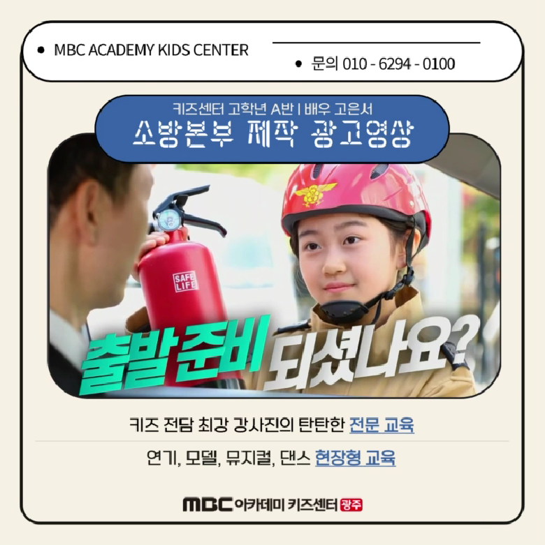 [키즈센터] 소방본부 제작 광고 촬영! 페이지 정보 작성자MBC아카데미연극음악원광주 댓글 0건 조회 3,657회 작성일 23-10-03 18:37 본문 목록 이전글[키즈센터] "고은서" SBS 모닝와이드 촬영! 23.10.25 다음글인터내셔널 슈퍼퀸 슈퍼스타 키즈모델 콘테스트 대상/은상 수상! 23.09.20
