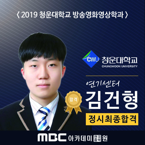 <2019학년도 실시간 합격자 발표> 청운대학교 정시 최종합격 - 연기센터 김건형