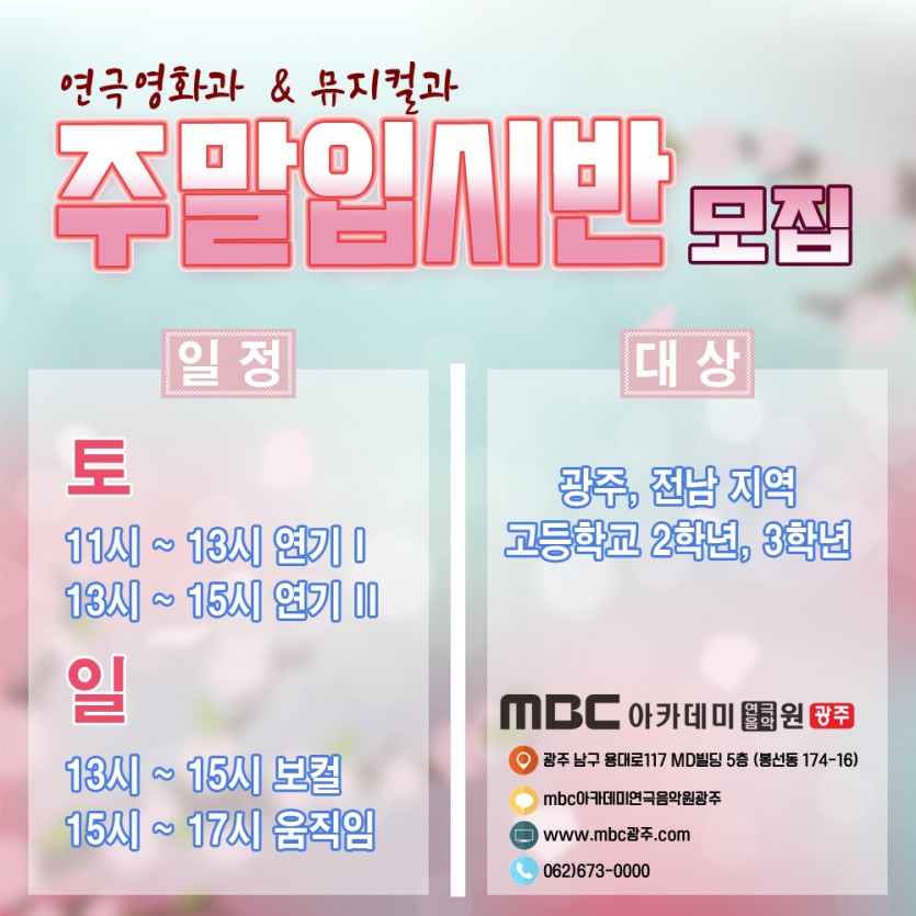 주말입시반 모집 페이지 정보 작성자 관리자 댓글 0건 조회 31,901회 작성일 18-03-21 18:53 본문 주말입시반 모집 목록 이전글 주말입시반 모집 - 다녀보고 결정하자! 18.03.22 다음글 다녀보고 결정하자 - 수강료 무료 이벤트 18.03.08