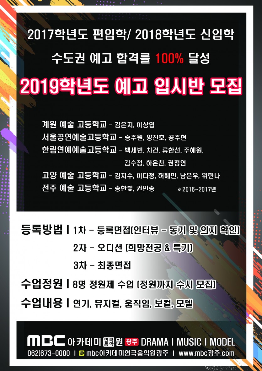 [드라마센터] 2018년 예고입시반 모집 페이지 정보 작성자 관리자 댓글 0건 조회 32,231회 작성일 17-12-02 19:18 본문 2018년 예고입시반 모집 목록 이전글 진로진학 체험수업에 방문해주신 여러분 감사드립니다. 17.12.06 다음글 [뮤직센터] 직장인! 싱어송라이터 되다! 17.12.01