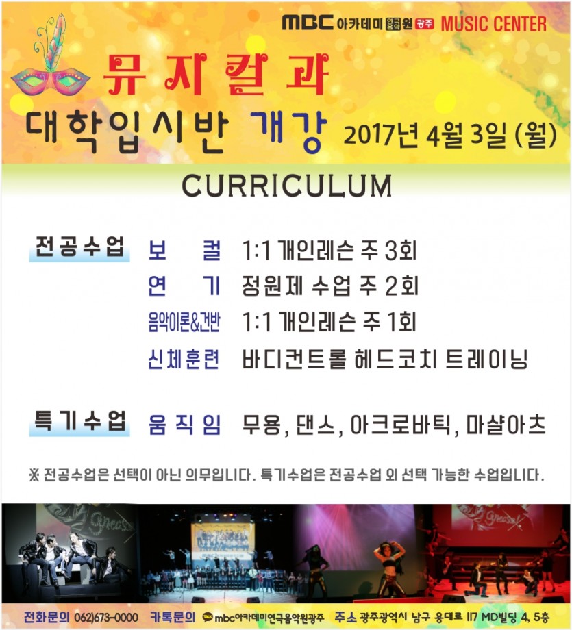 [뮤직센터] 뮤지컬과 대학입시반 개강 페이지 정보 작성자 관리자 댓글 0건 조회 30,327회 작성일 17-03-13 21:06 본문 뮤지컬과 대학입시반 개강 목록 이전글 [뮤직센터] 실용보컬/싱어송라이터 대학입시반 개강 17.03.13 다음글 [뮤직센터]피아노 반주! 5주 완성! 나도 할 수 있다! 17.03.10