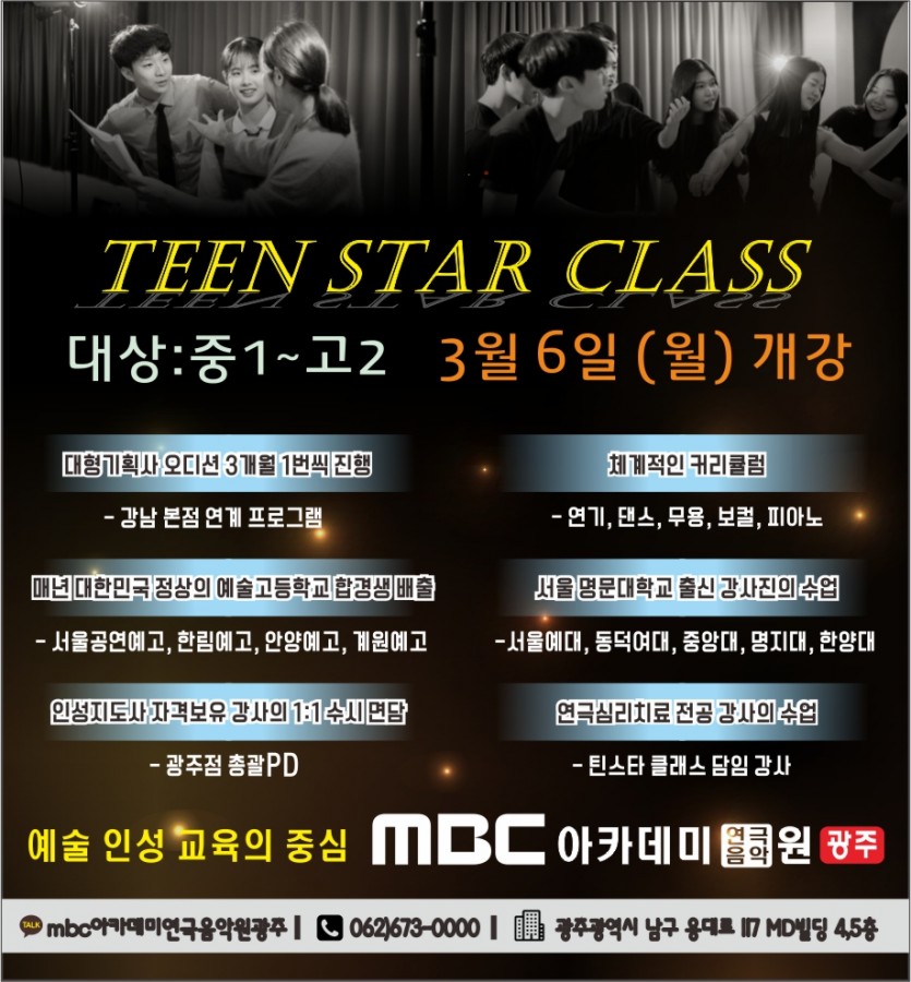 틴스타반 개강!!!!!! 페이지 정보 작성자 관리자 댓글 0건 조회 30,563회 작성일 17-02-23 19:59 본문 대상 : 중1~고2 3월 6일 (월) 개강 목록 이전글 입시대비반&틴스타반 에쮸드 발표회 17.02.27 다음글 "사임당"윤상호 감독님, "치외법권"신동엽 감독님의 배우수업 17.02.15