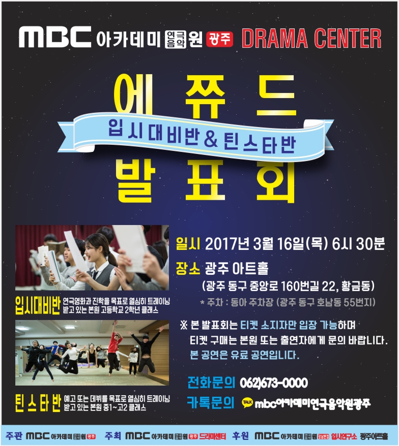 입시대비반&틴스타반 에쮸드 발표회 페이지 정보 작성자 관리자 댓글 0건 조회 29,818회 작성일 17-02-27 22:29 본문 에쮸드 발표회 목록 이전글 대학입시반&재입시반 에쮸드 발표회 17.02.28 다음글 틴스타반 개강!!!!!! 17.02.23
