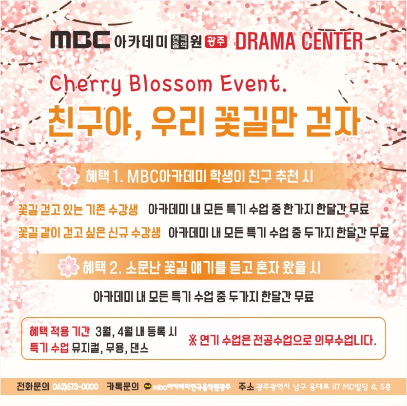 [드라마센터]벚꽃이벤트-친구야!우리 꽃길만 걷자 페이지 정보 작성자 관리자 댓글 0건 조회 29,865회 작성일 17-03-03 22:30 본문 새학기 이벤트 벚꽃이벤트-친구야!우리 꽃길만 걷자 목록 이전글 [뮤직센터]벚꽃이벤트-친구야! 우리 꽃길만 걷자 17.03.03 다음글 대학입시반&재입시반 에쮸드 발표회 17.02.28