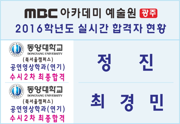 2016학년도 실시간 합격자 현황 [동양대] 페이지 정보 작성자 관리자 댓글 0건 조회 28,836회 작성일 15-12-16 18:00 본문 2016학년도 실시간 합격자 현황 [동양대] 목록 이전글 제3회 Music Center 정기공연- 실용 & 뮤지컬 15.12.23 다음글 2016학년도 실시간 합격자 현황 [청운대] 15.12.15