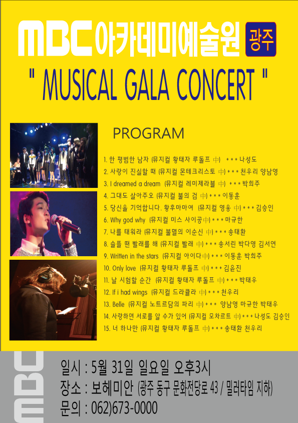 MUSICAL GALA CONCERT 페이지 정보 작성자 관리자 댓글 0건 조회 27,662회 작성일 15-05-15 15:03 본문 MUSICAL GALA CONCERT 목록 이전글 6월 실기 모의고사 실기 요강 15.06.25 다음글 ★ 2015 예술원[광주] 춘계 워크샵 ★ 15.04.06