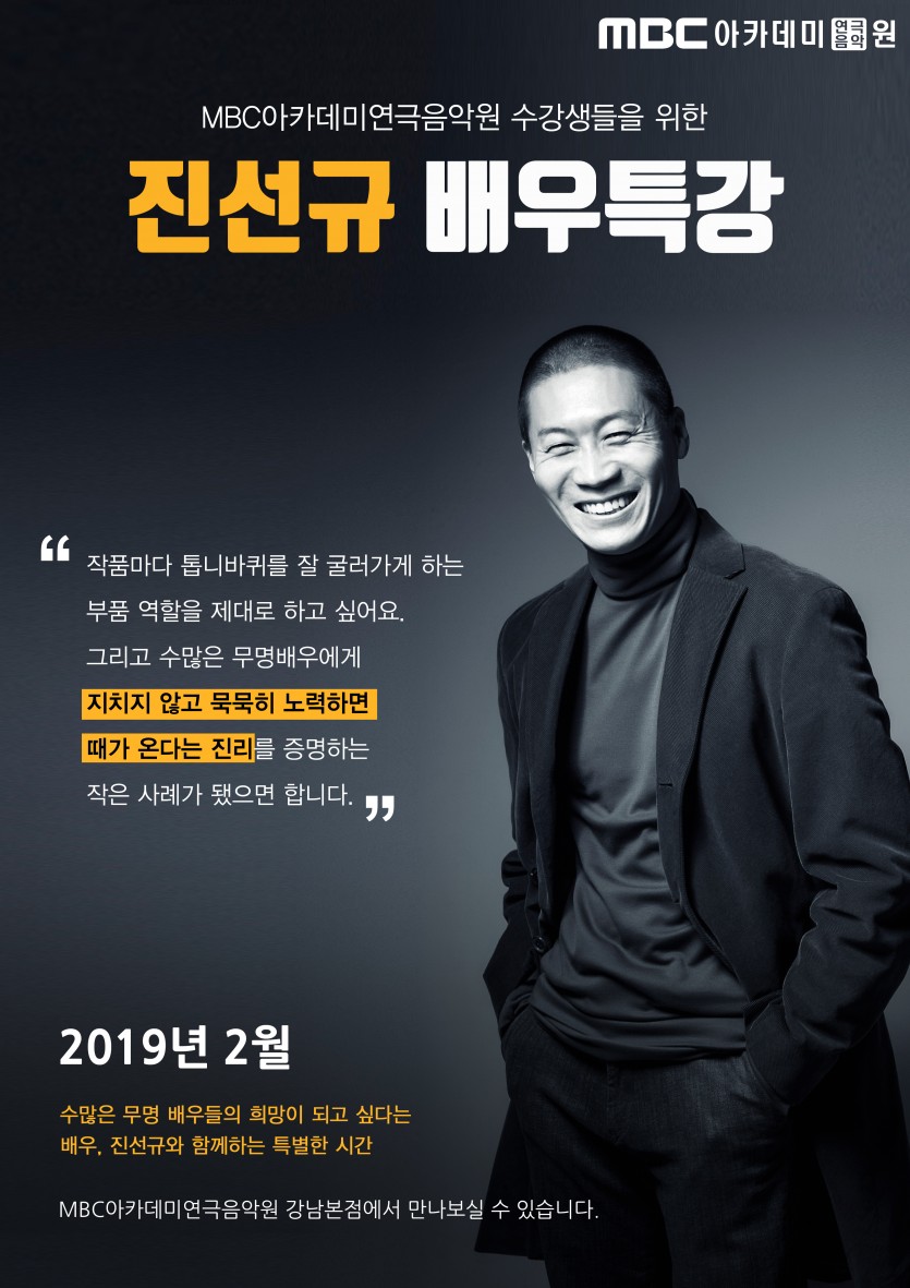 <배우특강> 진선규 배우 페이지 정보 작성자 관리자 댓글 0건 조회 26,459회 작성일 19-02-08 19:53 본문 <배우특강> 진선규 배우 목록 이전글 신학기 특별 EVENT - 다녀보고 결정하자 19.04.02 다음글 모델센터 <10기 모델캠프> 18.11.30
