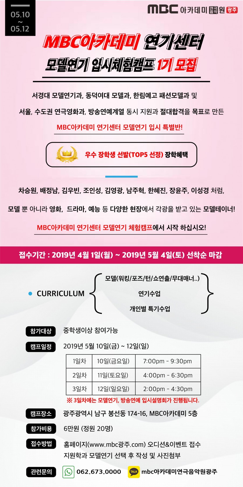 모델연기 입시체험캠프 1기 페이지 정보 작성자 관리자 댓글 0건 조회 26,121회 작성일 19-04-06 18:32 본문 오디션&이벤트 접수에서 지원학과 모델연기를 선택 후 작성 및 사진첨부 해주시면 됩니다! 목록 이전글 예비입시반 입시체험 수업 19.04.23 다음글 신학기 특별 EVENT - 다녀보고 결정하자 19.04.02