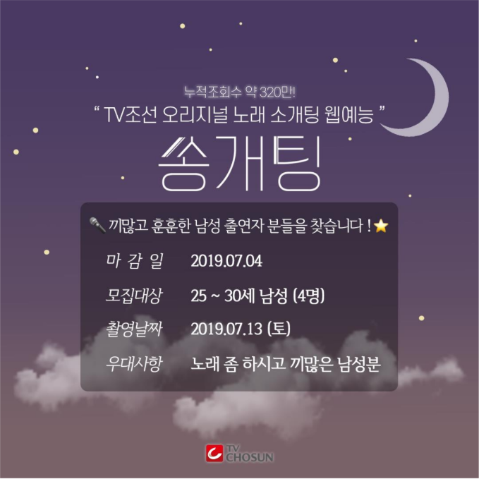 [뮤직센터] TV CHOSUN 웹예능 쏭개팅 20대 중후반 남성 출연자 공개 모집