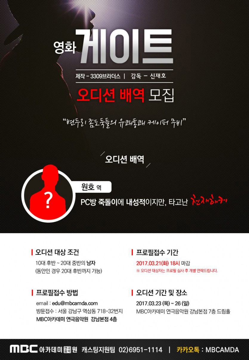 영화 [게이트] 배역 오디션 페이지 정보 작성자 관리자 댓글 0건 조회 24,071회 작성일 17-03-13 19:54 본문 영화 [게이트] 배역 오디션 목록 이전글 [드라마센터] 꿈 & 봄 이벤트 17.05.04 다음글 드림티엔터테인먼트&YMC엔터테인먼트 내방오디션 17.02.08