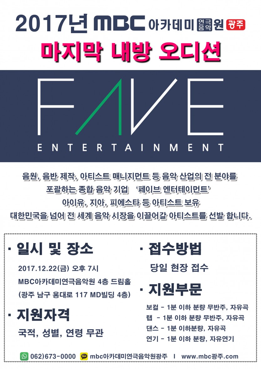페이브 엔터테이먼트 내방오디션 페이지 정보 작성자 관리자 댓글 0건 조회 24,846회 작성일 17-12-08 19:47 본문 페이브 엔터테이먼트 목록 이전글 FNC엔터테인먼트 오디션 17.12.14 다음글 [뮤직센터] 프렌쉽위크 - 체험수업 17.12.04