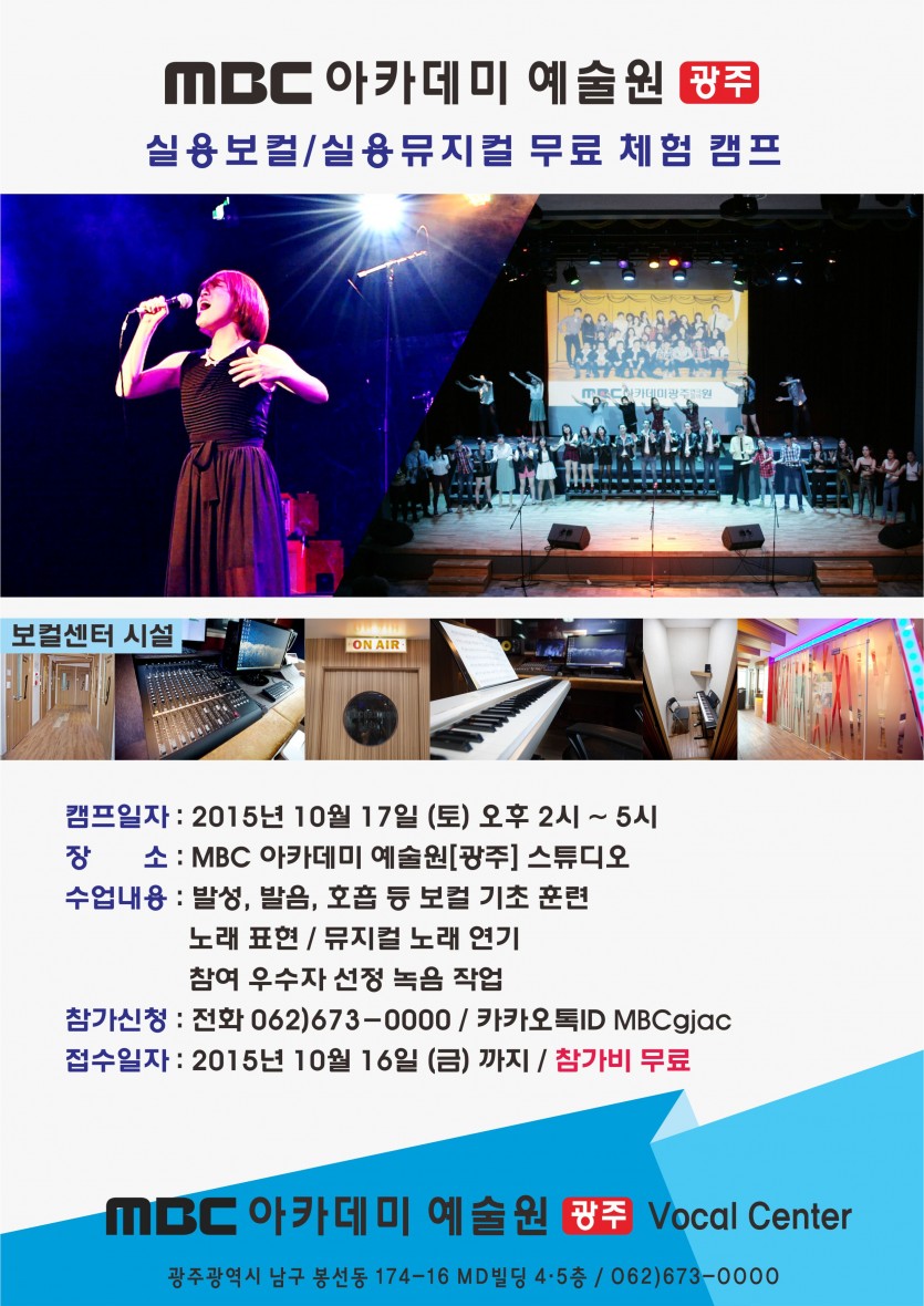 실용보컬/실용뮤지컬 체험캠프 페이지 정보 작성자 관리자 댓글 0건 조회 23,956회 작성일 15-10-02 16:10 본문 실용보컬/실용뮤지컬 체험캠프 목록 이전글 연극영화과 / 뮤지컬과 무료 체험캠프 15.10.29 다음글 울림엔터테인먼트 오디션 15.09.12