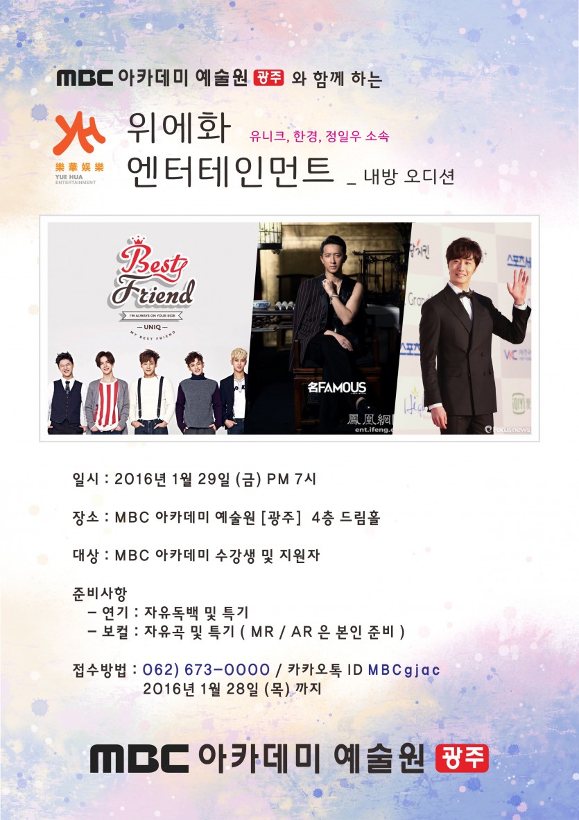 위에화 오디션 페이지 정보 작성자 관리자 댓글 0건 조회 23,630회 작성일 16-01-23 16:39 본문 위에화 오디션에 도전하세요!!!^^ 목록 이전글 뮤직센터 SPRING VACATION PROJECT 16.02.11 다음글 연극영화과•뮤지컬과 체험 수업 16.01.04