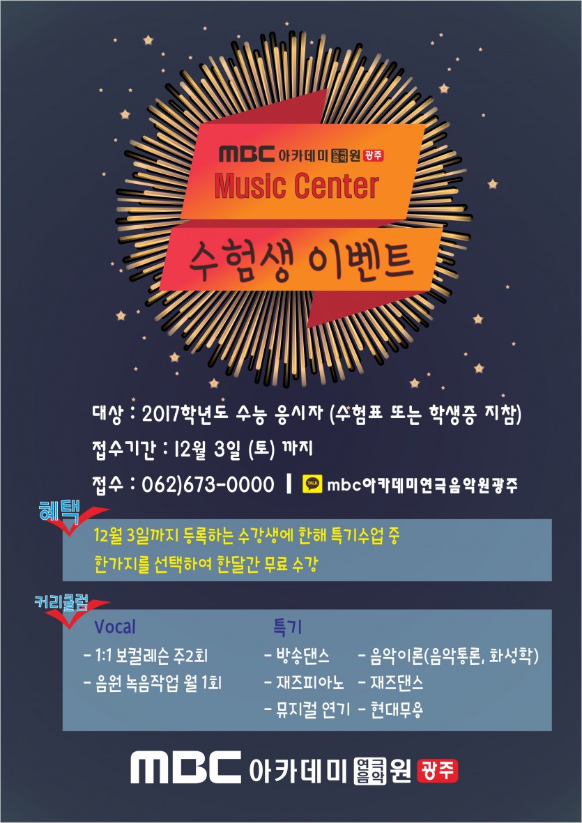 - 이전글 MBC아카데미연극음악원[광주] 청소년공연팀 오디션 [Youth Performing Arts GJ] 17.02.01
