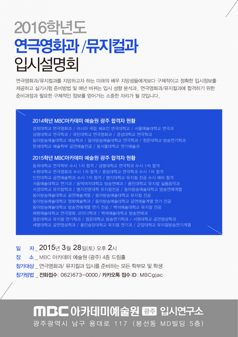 ★ MBC 아카데미 예술원 [광주] 2016학년도 입시설명회 개최 ★